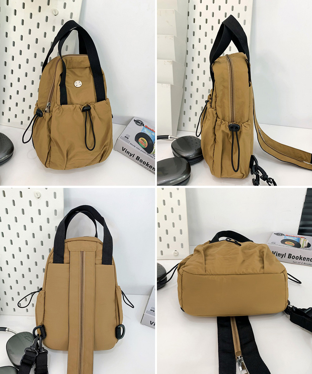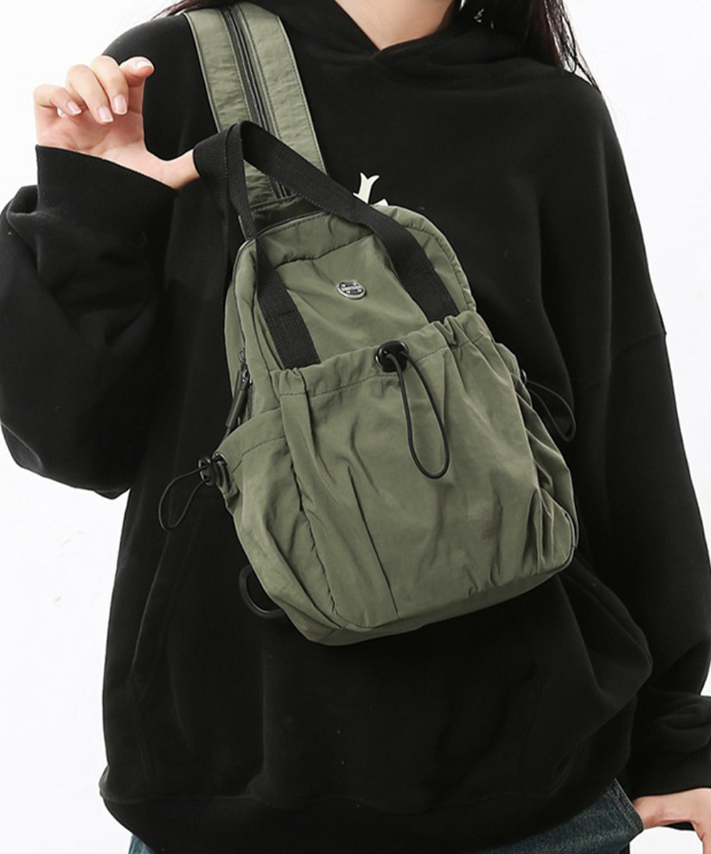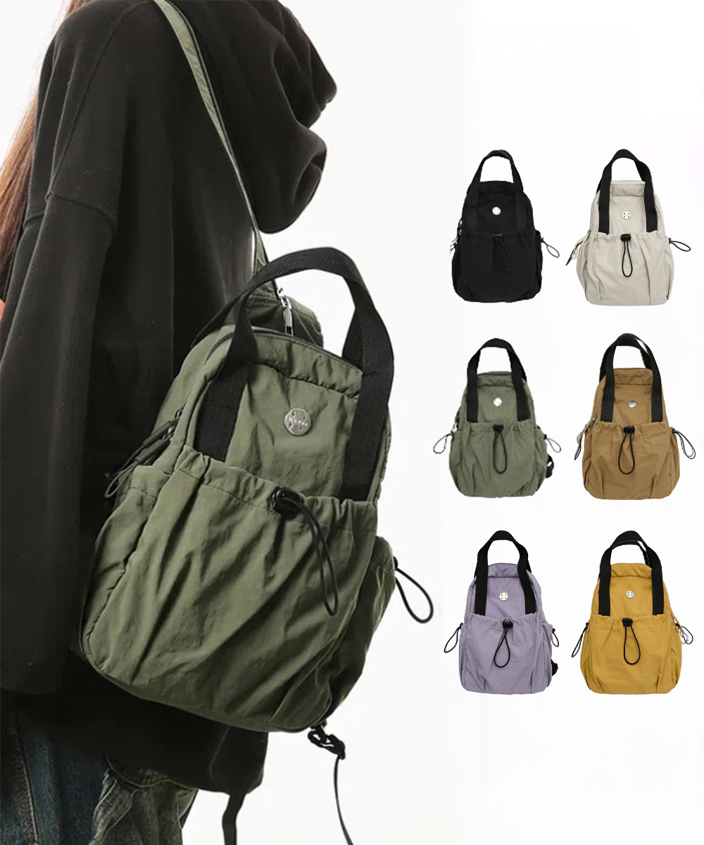 軽くて持ちやすい、ナイロン素材の2WAYミニリュック。 撥水仕様で汚れが付きにくく、急な雨の日も安心。 メイン収納はダブルファスナー仕様で、開閉もスムーズ。 外ポケット+ドロスト(ギャザー)デザインで、小物の出し入れがしやすい。
