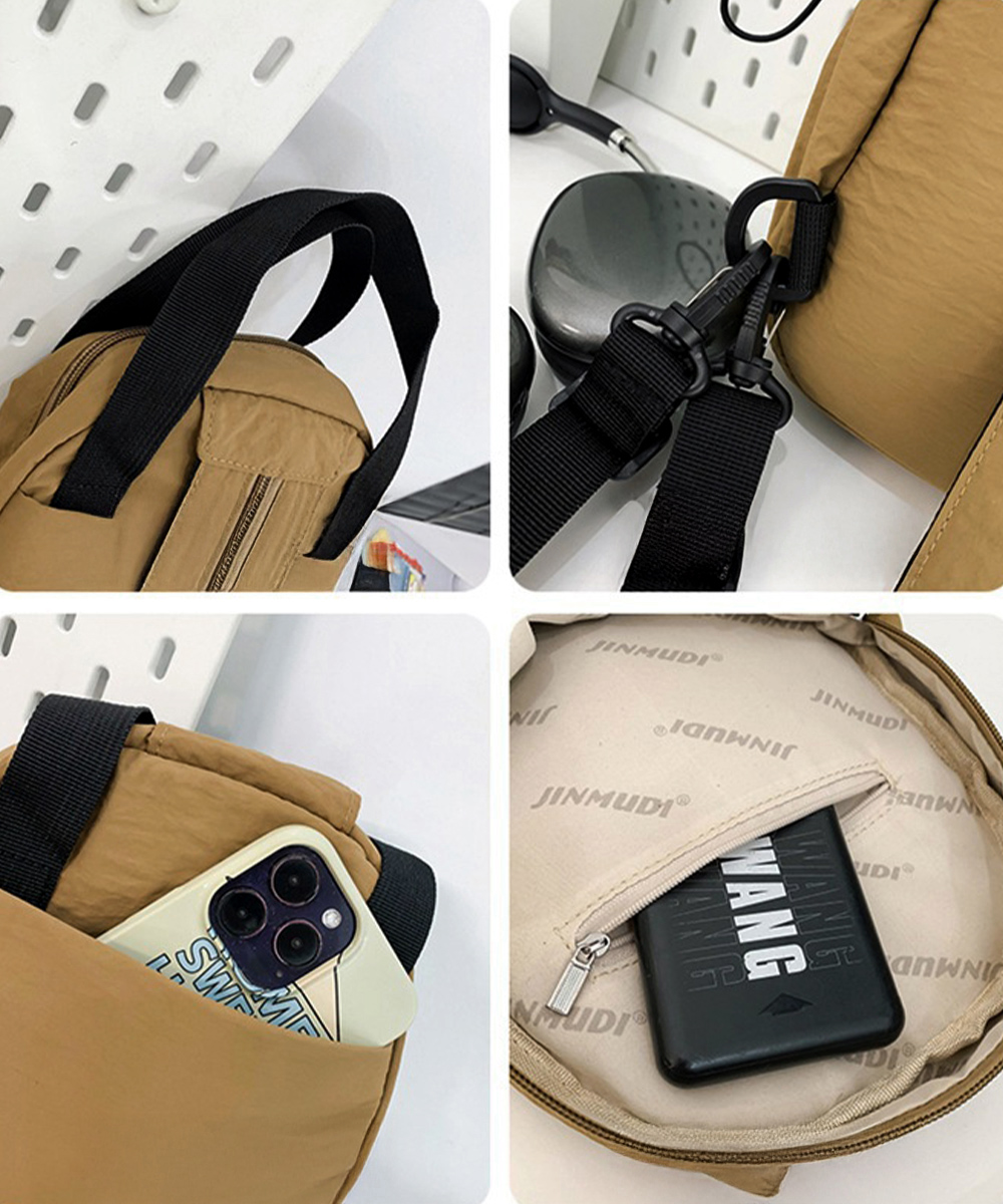 素材:ナイロン+ポリエステル サイズ: 高さ:約28cm 上横幅:約18cm 底横幅:約20cm マチ:約9cm 持ち手高さ:約7cm 持ち手長さ:約32cm(調節不可、取り外し不可) ショルダー:約76-110cm(調節可、取り外し不可) 重さ:約240g 裏地:あり 内ポケット:あり ■収納について ・A4対応(22×31cm):× ・iPadmini対応(19.6×13.5×0.7cm):〇 ・長財布(10×20cm):〇 ・二つ折り財布:〇 ・キーケース:〇 ・ペットボトル横向き(500ml):〇 ・ペットボトル縦向き(500ml):〇