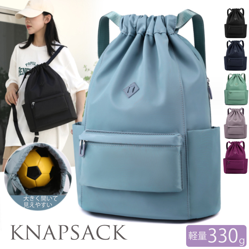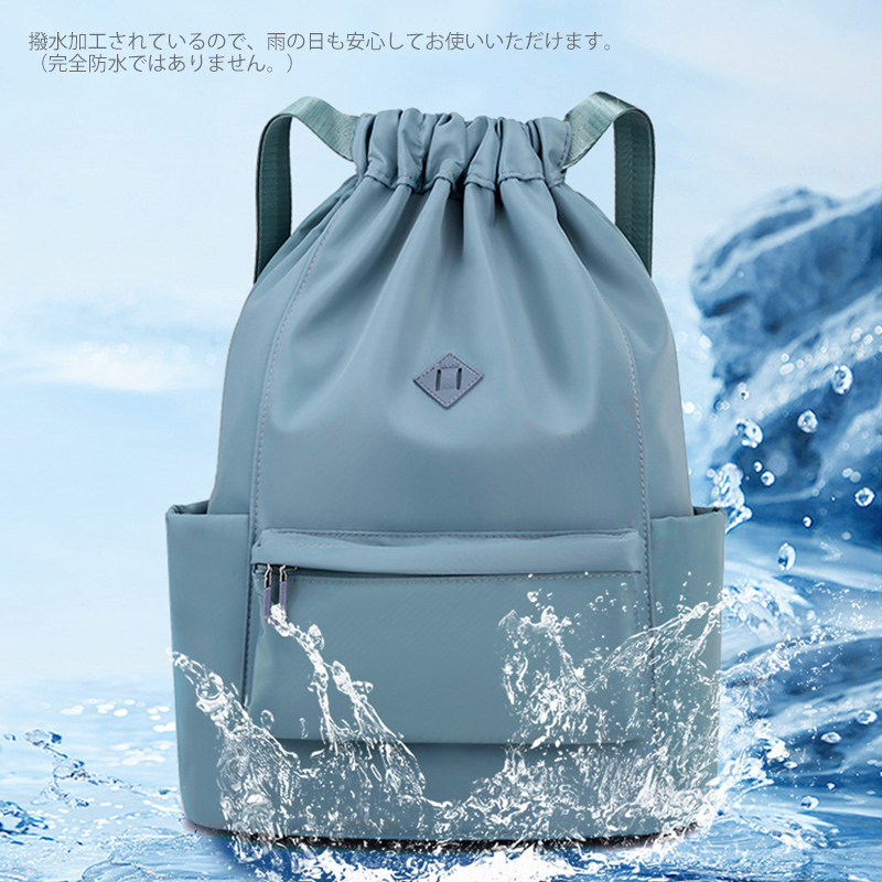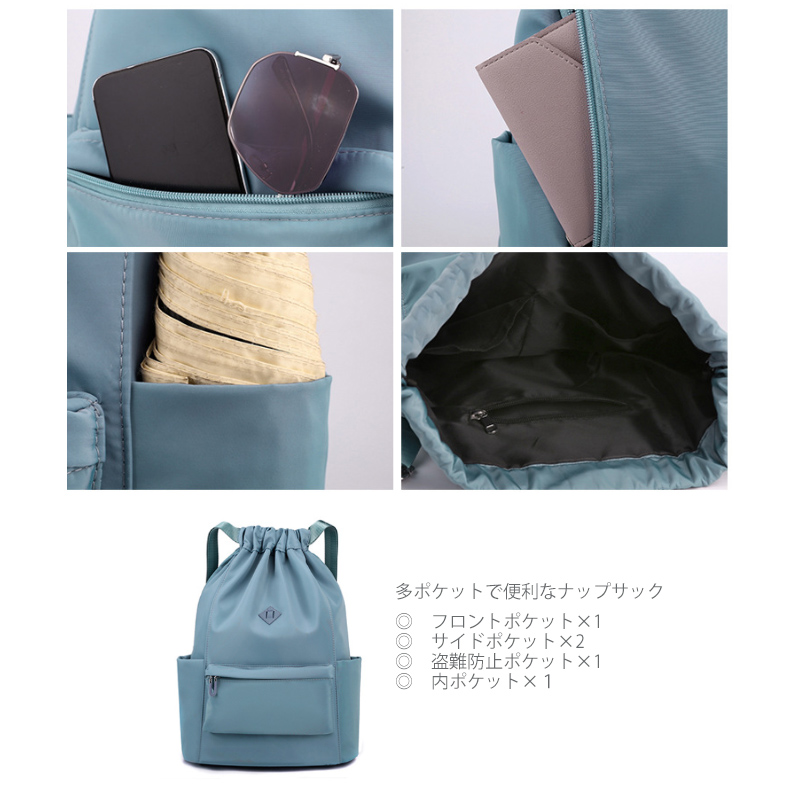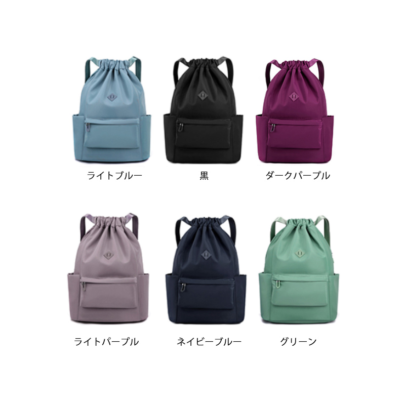 ・撥水加工されているので、雨の日も安心してお使いいただけます。(完全防水ではありません。) ・開口部は巾着タイプで大きく開き中が見えやすいです。 ・軽量で柔らかい素材なので、折り畳めます。 ・ポケットが多く嬉しい大容量サイズ。 ■サイズ(約cm) 幅cm×高さcm×マチ15cm/330g ■素材 ナイロン ■裏地 なし ■内ポケット あり