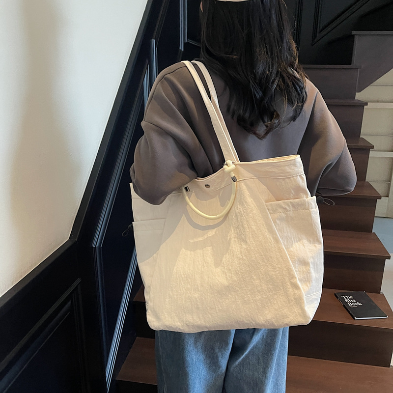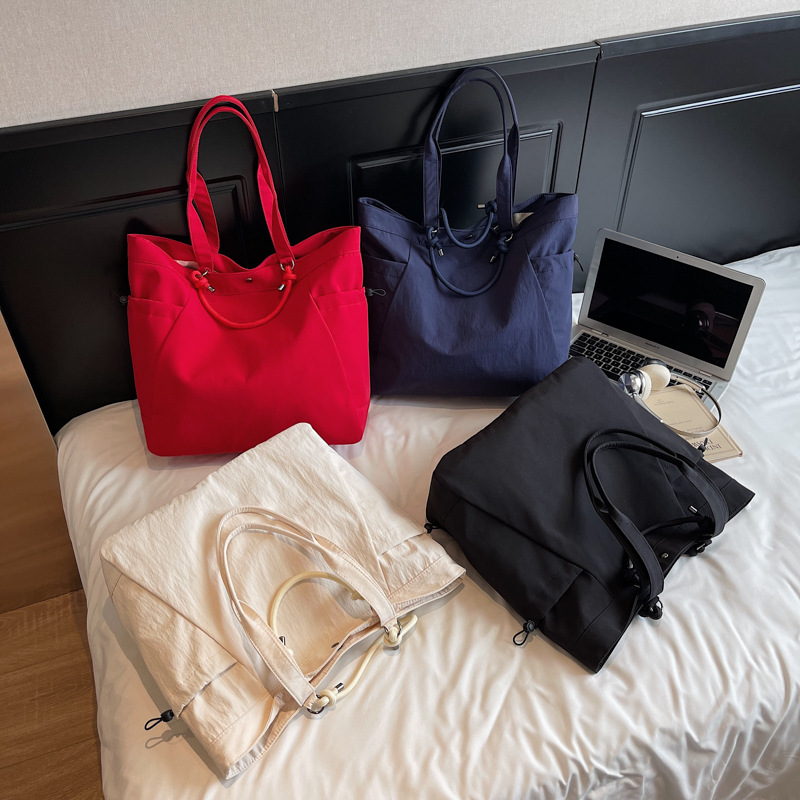 ジムバッグとしても旅行用としても使える万能トートバッグです。 大容量でありながらシンプルなデザインが魅力的。 4色のカラー展開でお好みに合わせてお選びいただけます。 軽量で丈夫なナイロン素材を使用し、日常使いからジムまで幅広くご活用いただけるレディース鞄です。