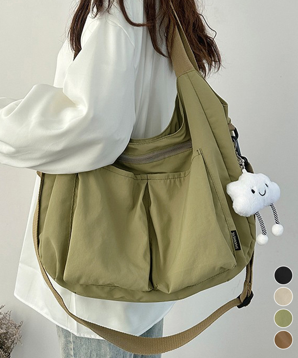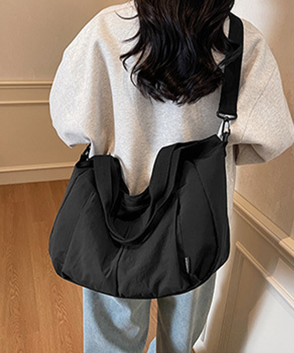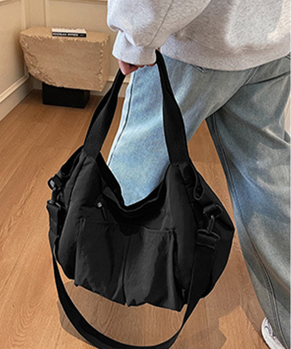 収納力に優れた大容量デザインが魅力の、ナイロン素材ショルダーバッグ。 複数ポケットとファスナー仕様で中身を整理しやすく、デイリー使いに便利。