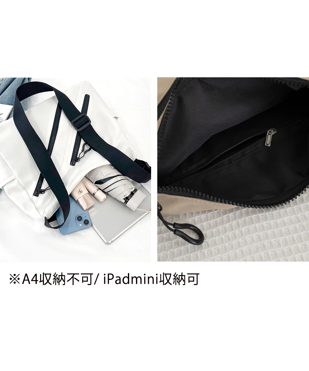 内ポケット付きで小物整理も便利。 長財布やペットボトルも収納可能。