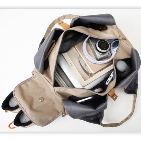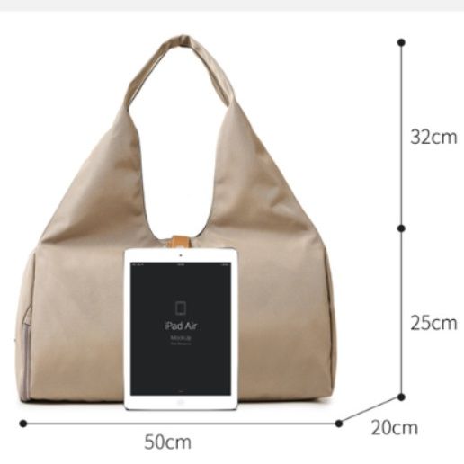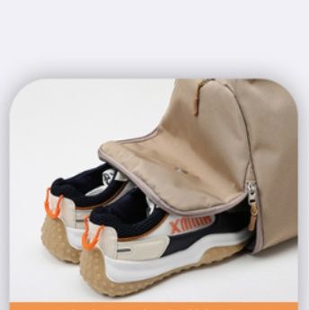トートバッグ本体には大容量のメイン収納に加え、シューズ専用の独立ポケットを装備しています。