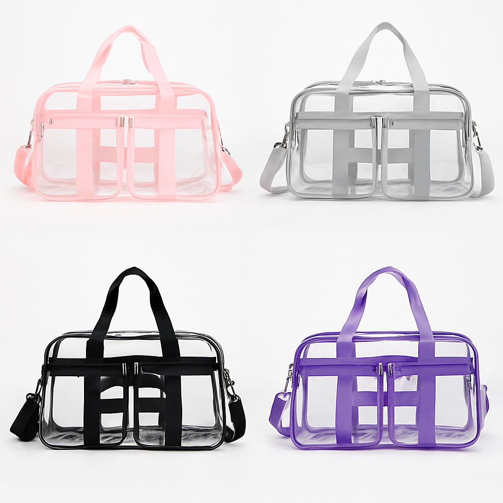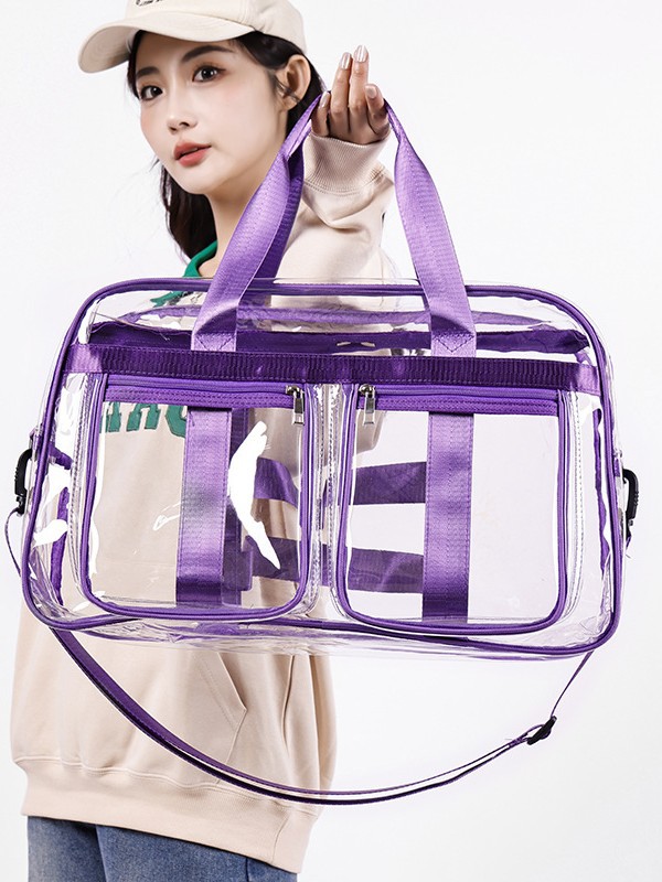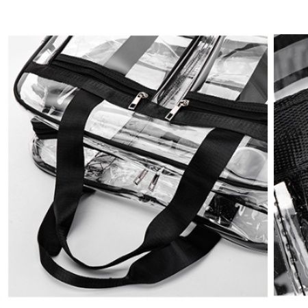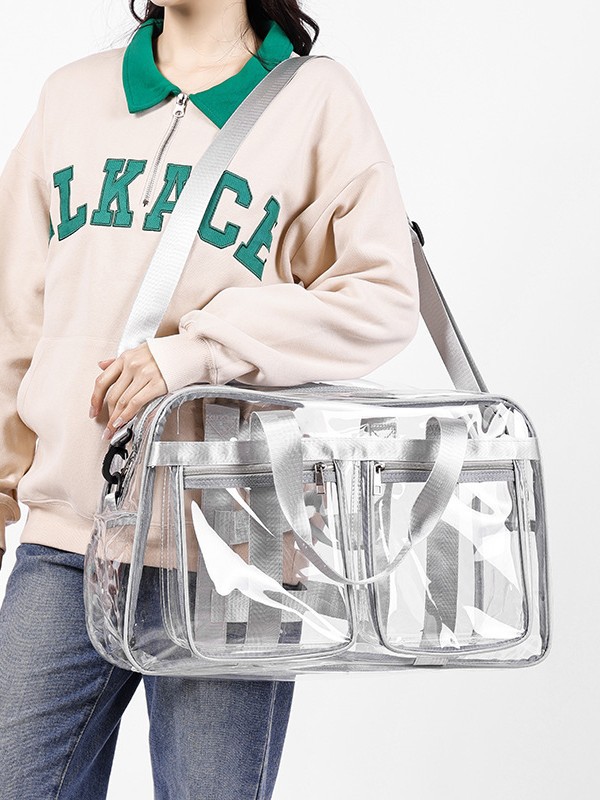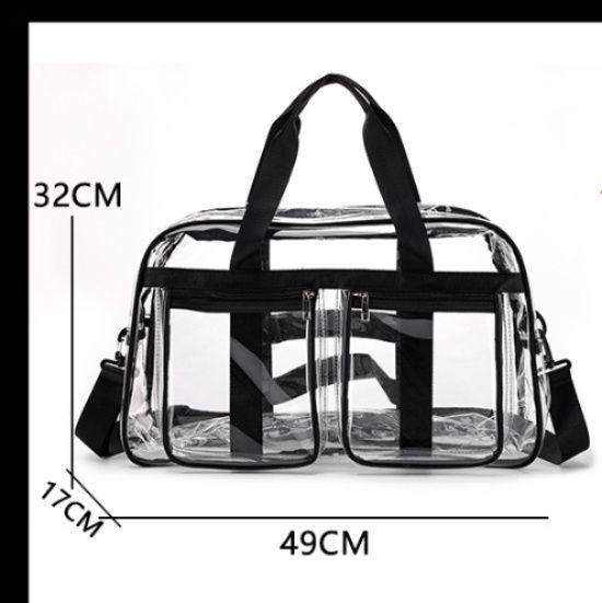 中身が一目で確認できる透明PVC素材を使用した防水仕様のジムバッグです。