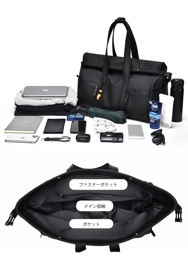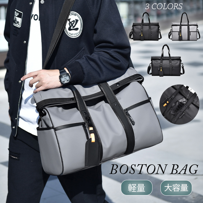 ・手持ち、肩掛け、リュックスタイルで使える、3wayボストンバック。 ・ニーズにあわせてショルダーバッグ、ハンドバッグ、斜め掛けバッグと色々な形を楽しむことができます。 ・濡れた衣類や折り畳み傘など、収納することができる防水仕様のポケットがあります。 ・フロントの2つポケットで小物を分けて収納することができます。