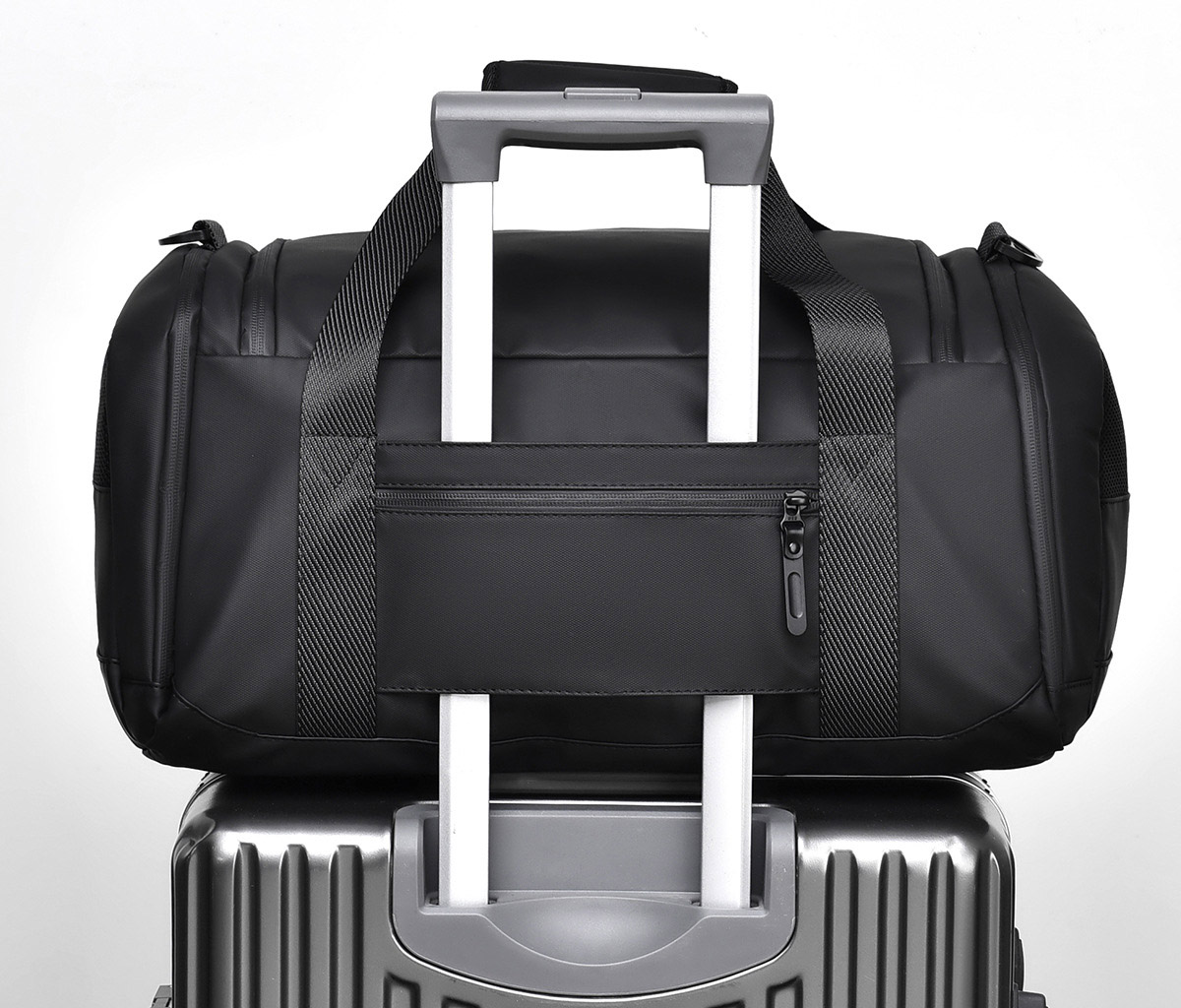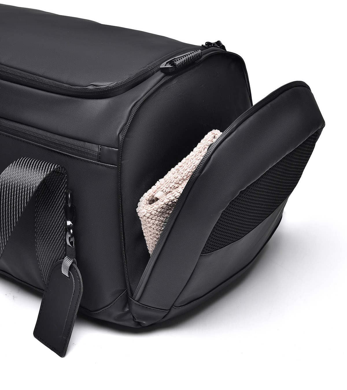手持ち、肩掛け、斜め掛けの三通りで使える多機能ジムバッグです。