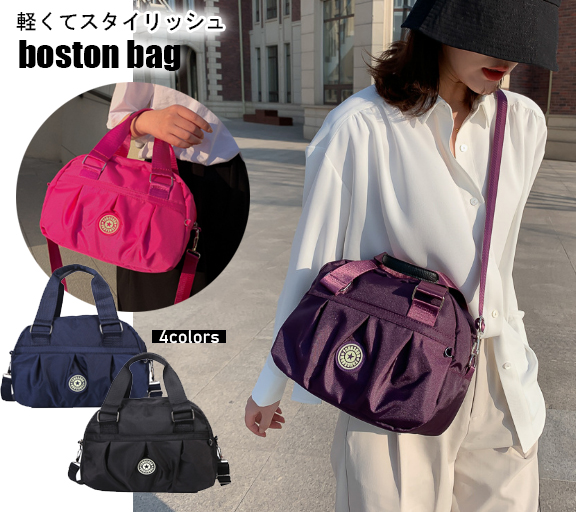 高品質、手触りの良いナイロン素材の軽くて便利なボストンバッグです。 肩掛け、斜め掛け、ショルダーを取り外しトートバッグとして使用可能です。 持ち手はPUレザーを仕様、丈夫な仕上がりです。