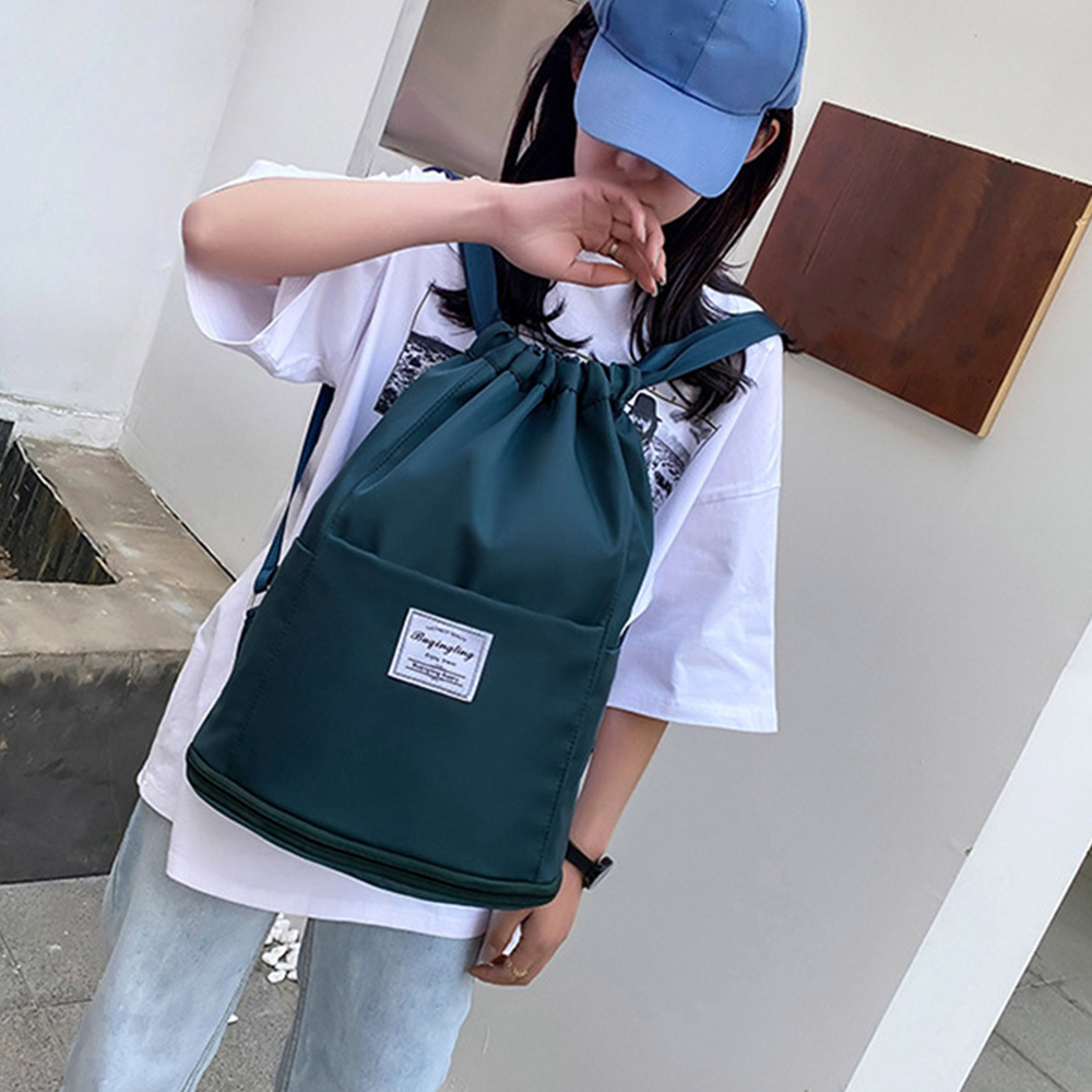 軽量ナイロン製の大容量巾着リュックで、ジムバッグとしても最適です。