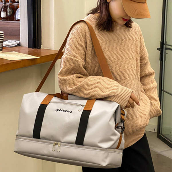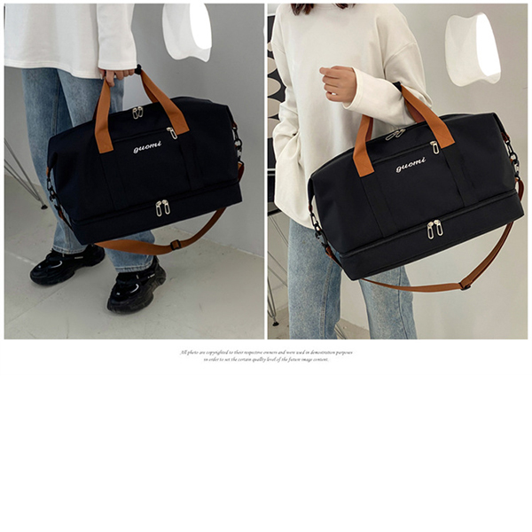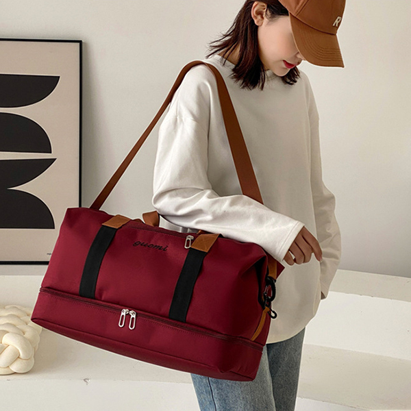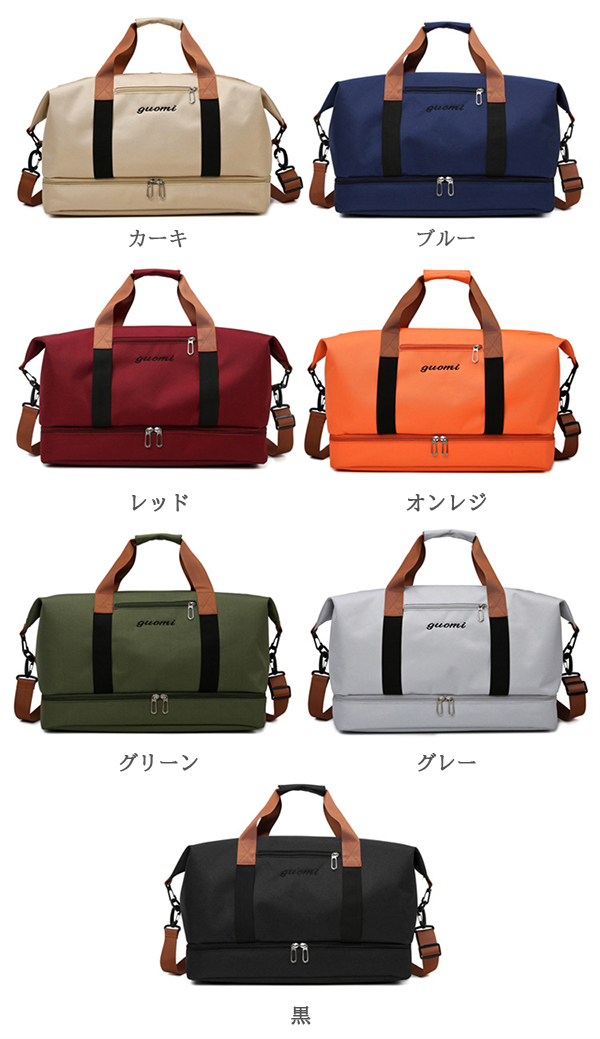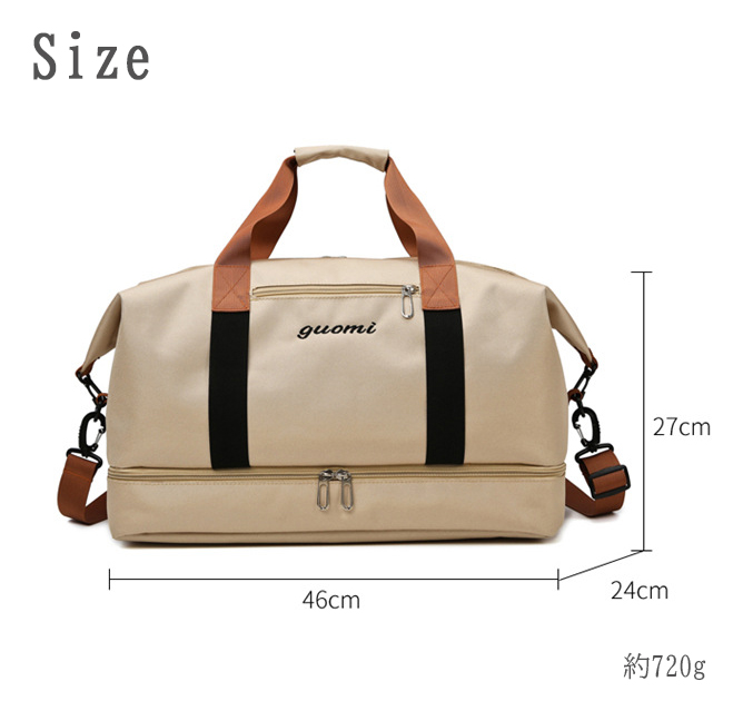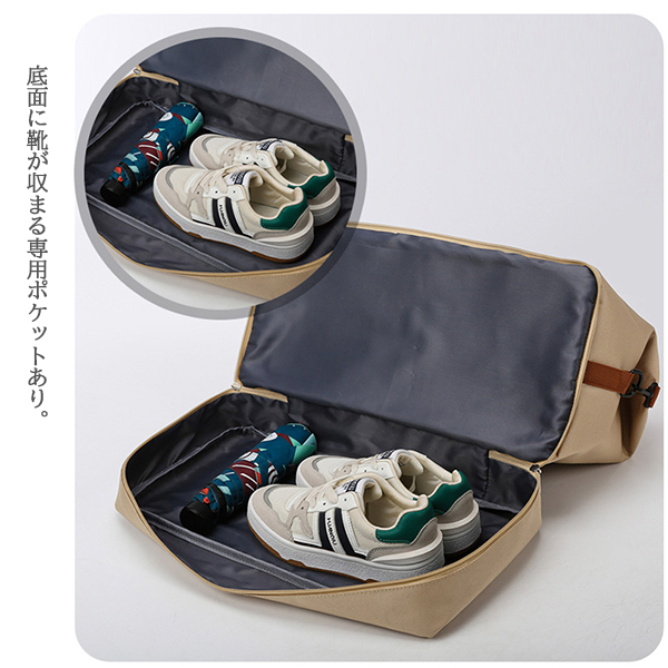 ・ニーズにあわせてショルダーバッグ、ハンドバッグ、斜め掛けバッグと色々な形を楽しむことができます。 ・濡れた衣類や折り畳み傘など、収納することができる防水仕様のポケットがあります。 ・底面に靴が収まる専用のファスナー付きポケットあります。 ・多ポケットで小物を分けて収納することができます。 ■素材 ポリエステル ■裏地 あり ■内ポケット あり