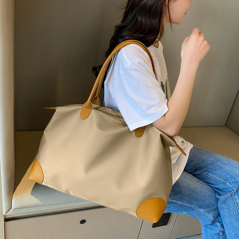 マチ付きで大容量のナイロンバッグです。ファスナー開閉式で背面ポケットと内ポケット付きのため、荷物の出し入れや整理整頓が簡単にできます。
